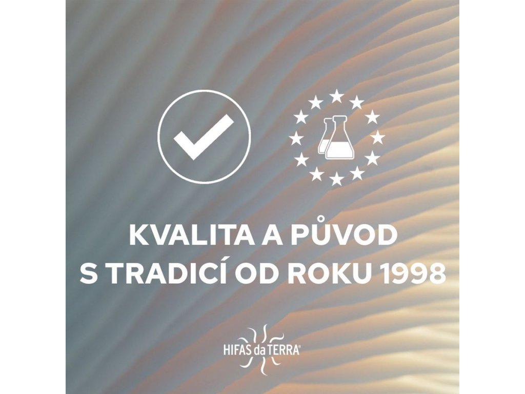 - 360° dohledatelnost - každou složku v produktech Hifas da Terra lze dohledat doslova ze všech stran, proto 360°. Přísně kontrolovaná produkce od pěstování, přes kultivační procesy až po uvedení na trh podléhají farmaceutickému standardu kvality GMP (Good Manufacturing Practice).