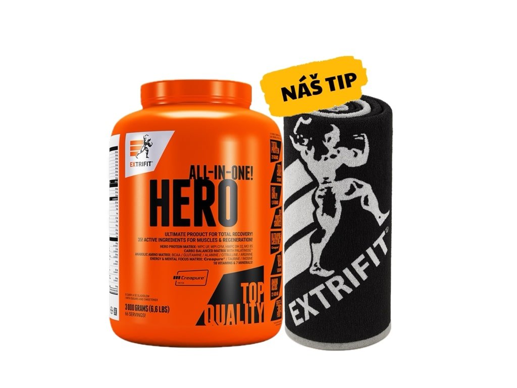 Hero nastartuje regeneraci a obnovu svalové hmoty ihned po dokončení tréninkové jednotky. Nyní ve výhodné akci s ručníkem Extrifit bílo-černá velké logo ZDARMA.