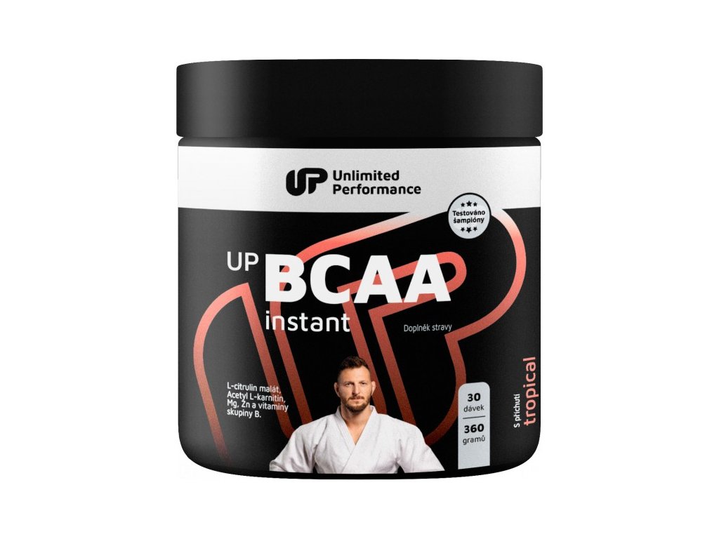 UP BCAA Instant jsou navrženy tak, aby Vám umožnily delší a tvrdší tréninky a zároveň zajistily dostatečně rychlou a kvalitní regeneraci po tréninku. UP BCAA Instant Vám umožní posouvat hranice trénovatelnosti a Vaší výkonnosti k nejvyšším metám. Instantní doplněk stravy se sladidlem, s BCAA aminokyselinami, L-citrulinem malátem, acetyl-L-karnitinem, hořčíkem, zinkem a vitamíny B1, 2, 3, 5, 6. Na vývoji produktu se podílel olympijský vítěz Lukáš Krpálek, který ho sám ve své sportovní přípravě používá.