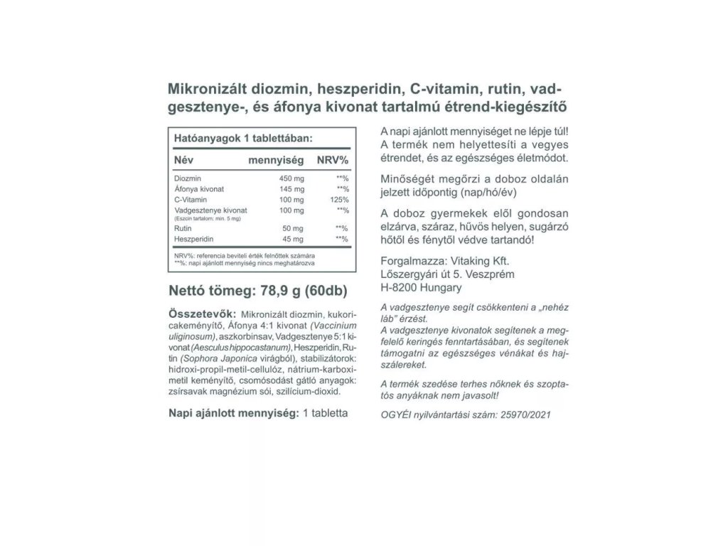 - S extraktem z borůvek, diosminem, vitaminem C, extraktem z koňského kaštanu a hesperidinem