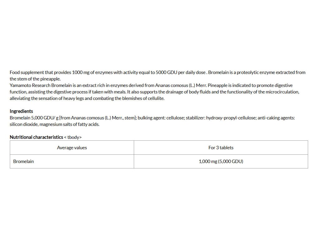 Bromelain je doplněk stravy obsahující bromelain, známý jako trávicí enzym. Pomáhá podporovat přirozené obranné mechanismy organismu. Tento enzym patří do skupiny proteolytických enzymů, tj. enzymy, které pomáhají trávit bílkoviny. Dokáže "rozložit" složitou strukturu bílkovin, aby tělo mohlo trávit a vstřebávat živiny z bílkovin