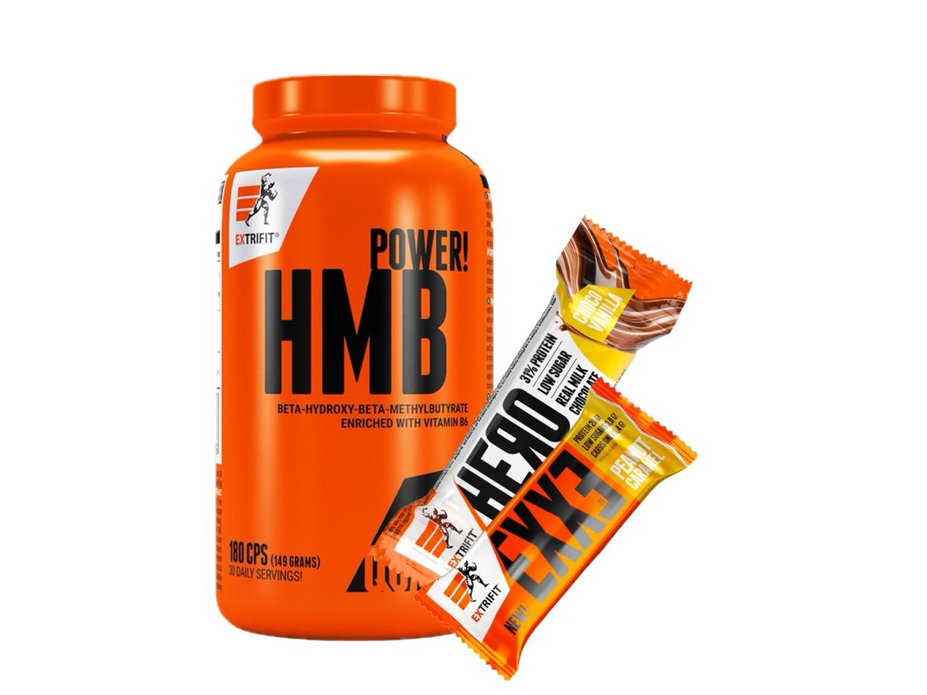 HMB Power poskytuje v doporučené dávce 3 000 mg čistého HMB a 100 % denní dávky vitamínu B6. Nyní ve výhodné nabídce s 1 ks Hero Protein Bar 31% 65 g a 1 ks Exxe Iso Protein Bar 31% 65 g od Extrifitu ZDARMA.