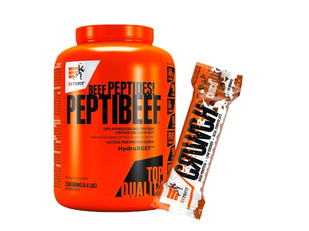 PeptiBeef® obsahuje značkový izolát HydroBEEF™ – hydrolyzované hovězí peptidy pocházející z masové (cca 25 %) a kosterní (cca 75 %) bílkoviny. Nyní ve výhodné nabídce s Protein Bar Crunch 50 g od Extrifitu ZDARMA.