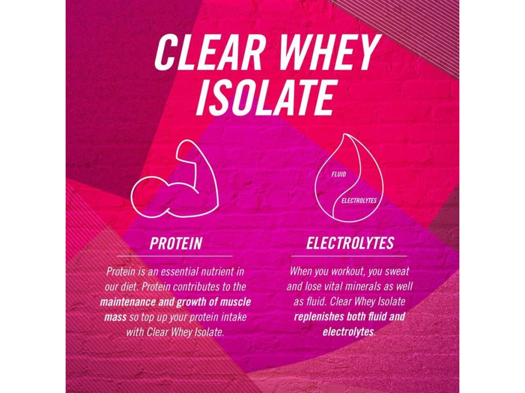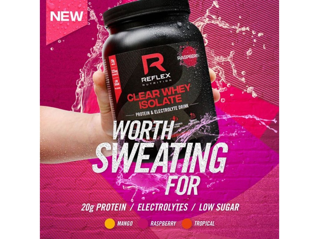 Proteinový drink s elektrolyty v osvěžující ovocné formě! Clear Whey se míchá s vodou a je určený pro osvěžení a regeneraci svalové hmoty. Pokud chcete doplnit denní dávku proteinu, ale nechcete klasický proteinový "milkshake", je pro vás Clear Whey ideální! Clear Whey je dostupný ve třech lahodných ovocných příchutích - mango, tropical a malina.
