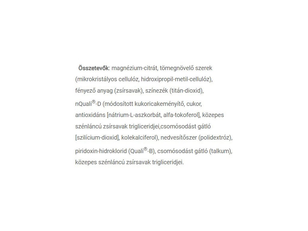 JutaVit Organic Magnesium + B6 + D3 je doplněk stravy, který obsahuje organický, dobře využitelný hořčík, vitamin B6 a D3. JutaVit Organic Magnesium obsahuje pouze organicky vázaný, dobře využitelný citrát hořečnatý. Organický hořčík získaný z citrátu hořečnatého je lépe využitelný než anorganické sloučeniny hořčíku (oxid hořečnatý, uhličitan hořečnatý). Hořčík a vitamin B6 přispívají ke správnému fungování nervového systému, k udržení normálních psychických funkcí a ke snížení únavy. Hořčík se podílí na energetickém metabolismu, na udržování zdravých kostí a zubů. Vitamin B6 je jedním z vitaminů skupiny B, který příznivě působí na centrální nervový systém. Podílí se na tvorbě neurotransmiterů serotoninu a noradrenalinu a na tvorbě myelinu. Vitamin D pomáhá udržovat zdravé svalové funkce.