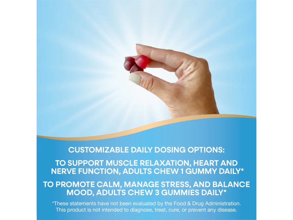 Složení Nature's Way Magnesium Gummy obsahuje citrát hořečnatý s vysokou vstřebatelností, který doplňuje hladinu stresem vyčerpaného hořčíku a podporuje klidnou a vyrovnanou náladu. Pro přizpůsobení denního dávkování si můžete vzít jednu žvýkačku na podporu svalové relaxace, srdce a nervové funkce. Žvýkejte tři žvýkačky, které pomáhají zklidnit, zvládat stres a vyrovnat náladu.