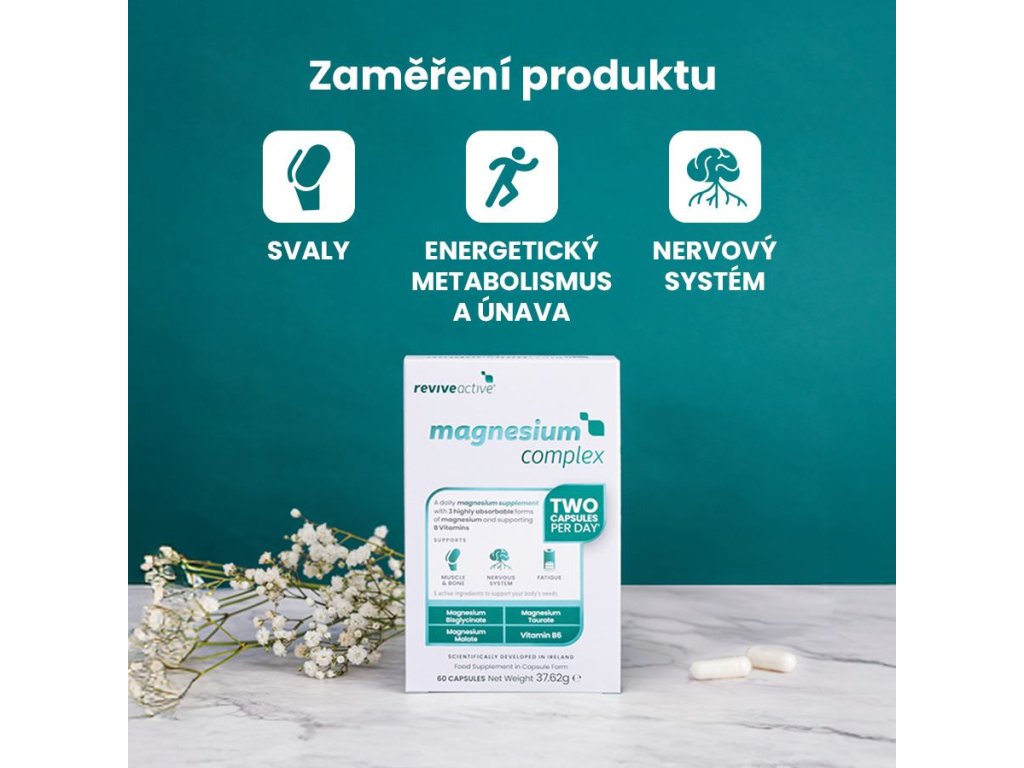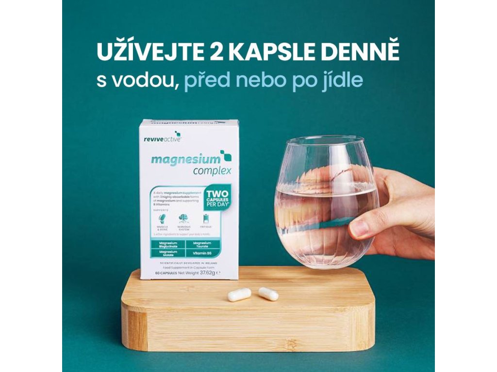 Magnesium Complex je vhodný pro aktivní sportovce i pro všechny vystavené psychické nebo fyzické zátěži a stresu. Magnesium Complex neobsahuje syntetické složky jako stearan hořečnatý a je v rostlinné kapsli.