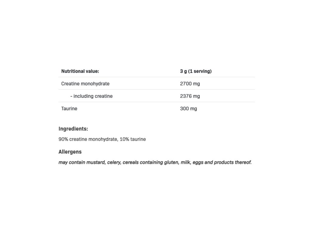 Pouze 3 g kreatinu denně zvyšují fyzickou výkonnost při krátkodobém, vysoce intenzivním cvičení. Je ideálním pomocníkem pro silové sportovce, vytrvalostní sportovce, bojové sporty a týmové hráče (fotbal, basketbal, hokej).