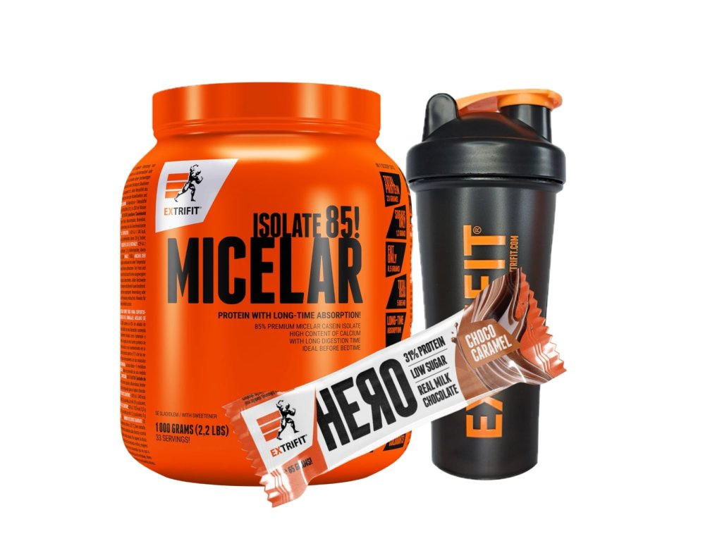 AKCE Extrifit Micelar Casein 1000 g + ZDARMA Šejkr 600 ml + Hero bar 65 g