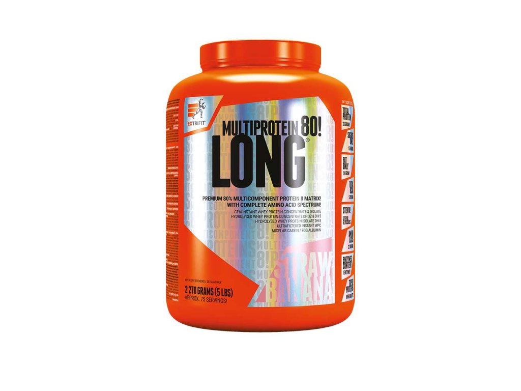 Hlavní předností multikomponentního proteinu Long® 80 Multiprotein je jeho postupnější uvolňování, než je tomu u klasického syrovátkového proteinu, a výrobek tak může zásobovat svaly bílkovinami po delší čas! Navíc je obohacen komplexem sedmi enzymů – papainem, alfa amylázou, bromelainem, laktázou, celulázou, neutrální proteázou a lipázou. Obsah proteinů je 76 %.