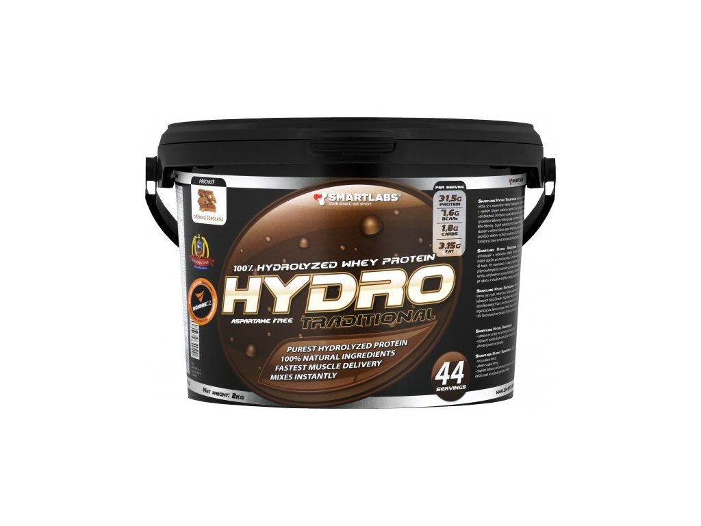 Historicky první 100% hydrolyzát syrovátkových bílkovin na českém trhu. Obsahuje více než 80 % krátkých peptidů, které se vstřebávají rychleji než aminokyseliny. Dokonalá chuť - nepoznáte, že pijete hydro s DH 32. Hydro Traditional představuje unikátní proteinový přípravek, jehož výjimečnost spočívá zejména v rychlé vstřebatelnosti. Důvodem je vysoký obsah peptidů získaných enzymatickou hydrolýzou syrovátkové bílkoviny (stupeň hydrolýzy je 32). Krátké peptidy (mol. hmotnost pod 1000 daltonů) tvoří víc jak 80 % bílkoviny. Vysoký podíl krátkých peptidů zabezpečí lepší absorpci a udržení bílkovin oproti nehydrolyzovanému proteinu. Vstřebávání krátkých peptidů je dokonce rychlejší než přenos samotných aminokyselin (díky specifickému transportu), živiny se tak dostanou do těla rychleji než z běžných zdrojů proteinu.