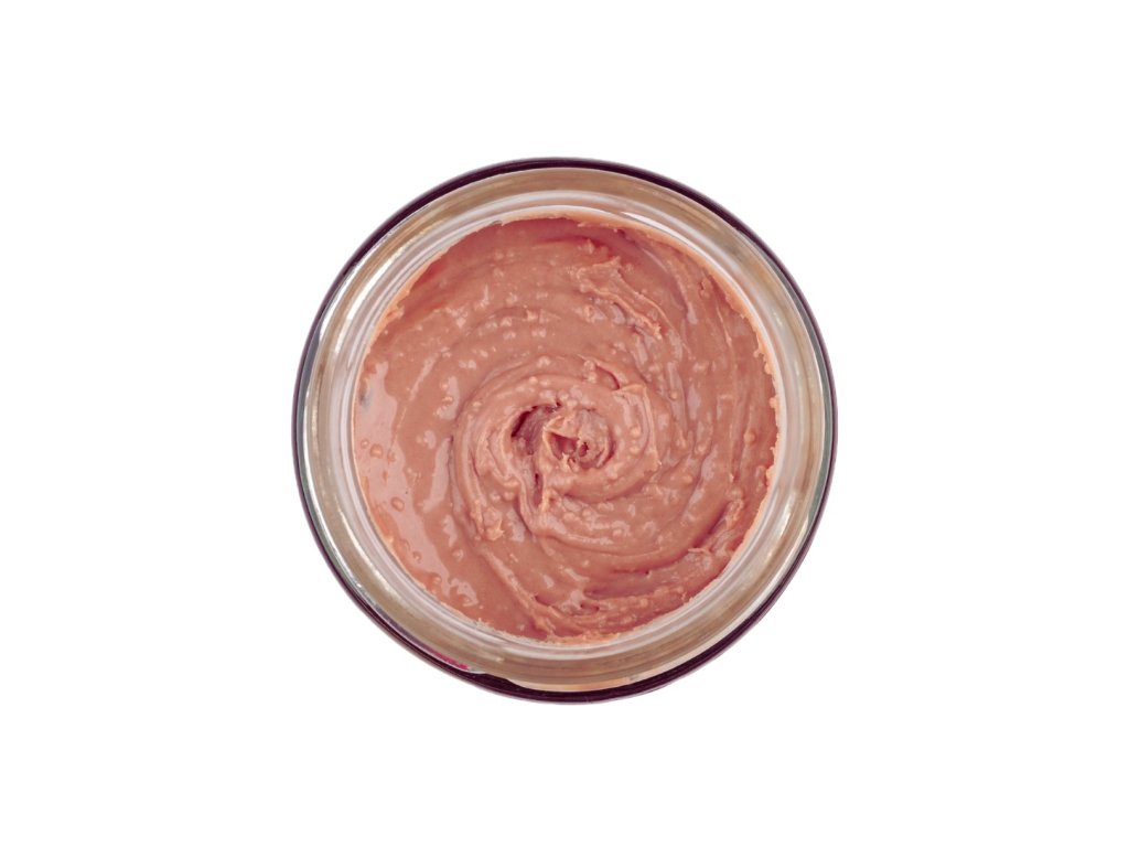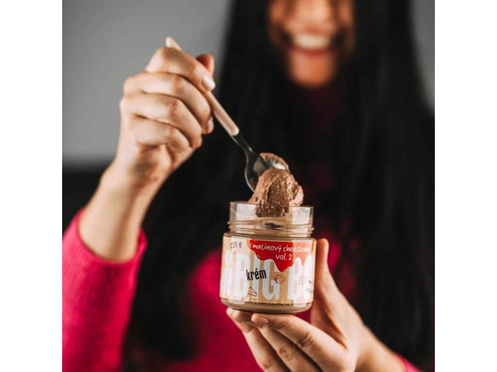 Ořechový krém s příchutí malinového cheesecaku.