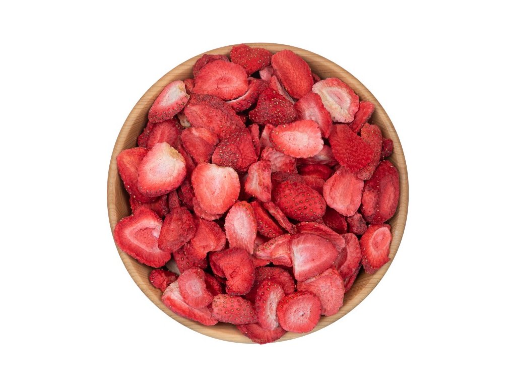 Výběrové mrazem sušené jahody. Lyofilizované jahody jsou křupavé, intenzivně aromatické a přirozeně sladké. Díky speciální metodě sušení mrazem si uchovávají plnou chuť, vůni i vitamíny. Skvěle se hodí do snídaní, cereálních směsí, pečiva nebo jako zdravá svačina na cesty.