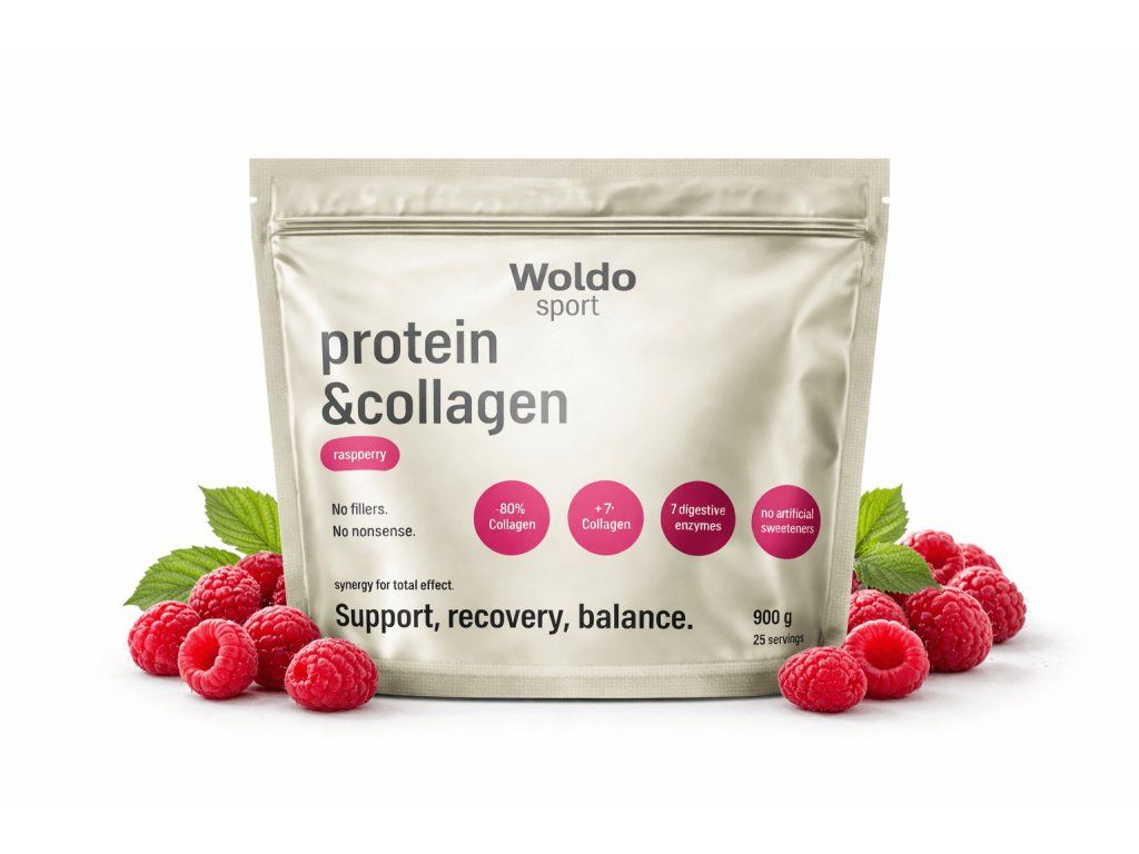 Woldosport®WPC Protein Malina 900 g – se syrovátkovým proteinem a kolagenem