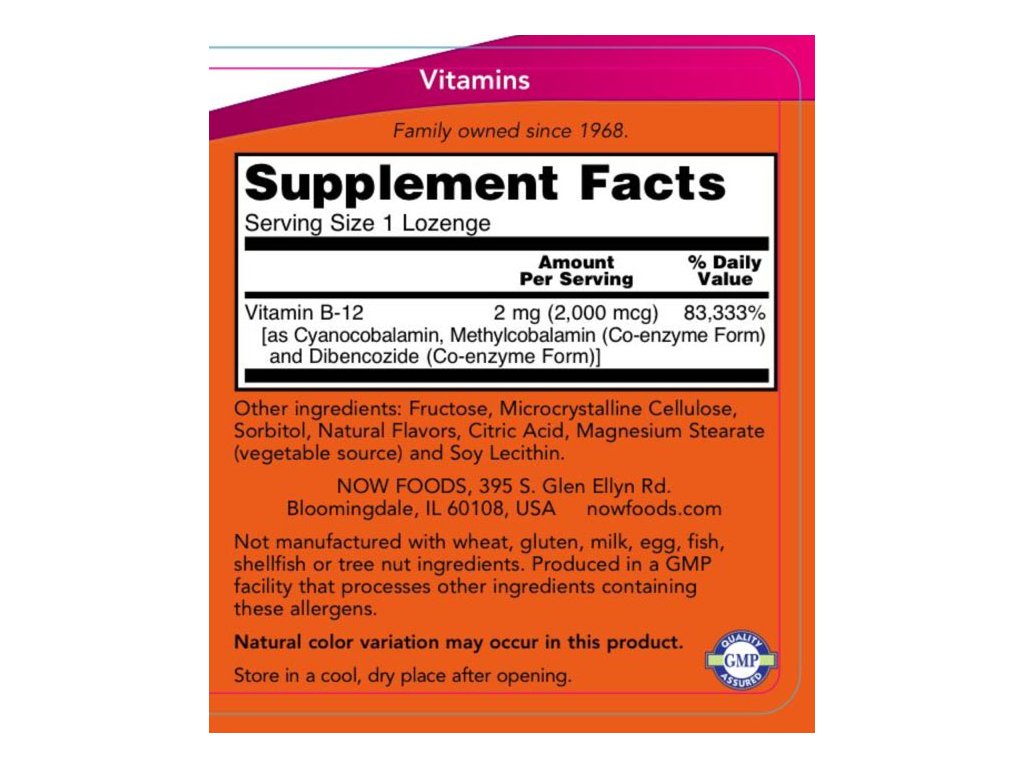 NOW FOODS Vitamin B-12, 2000 μg, 100 pastilek