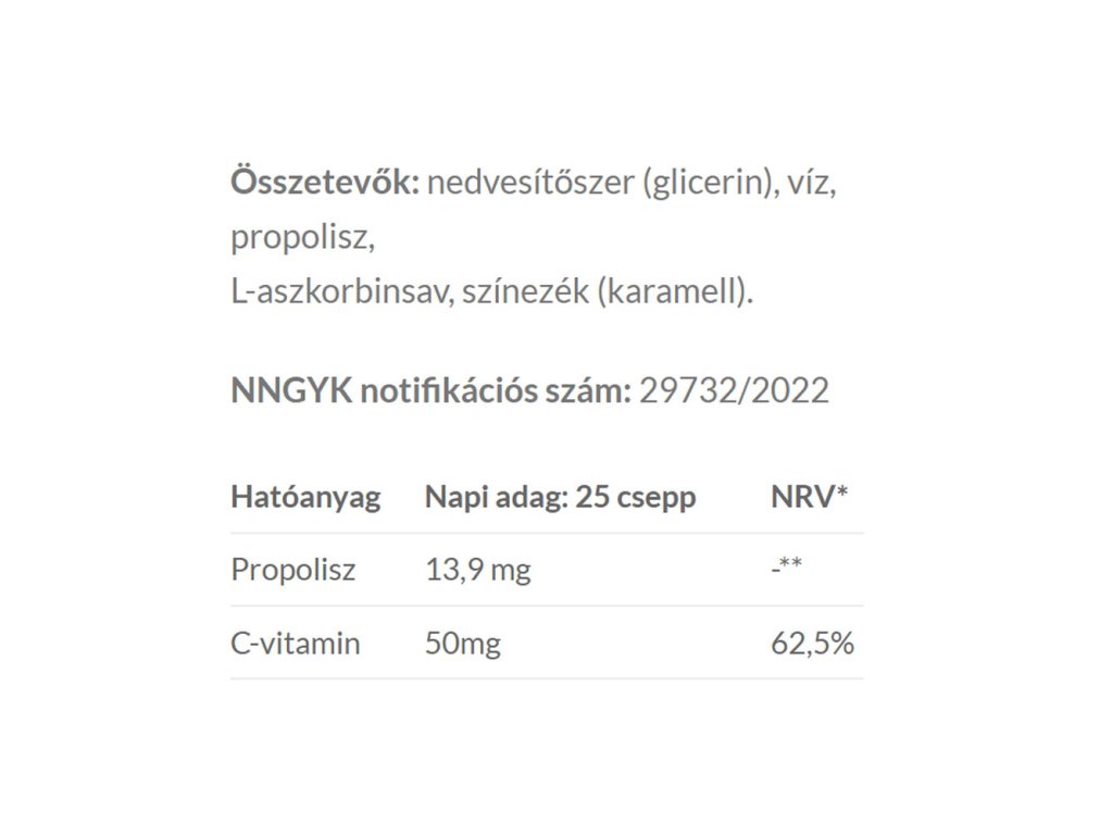 Propolis (včelí pryskyřice) je pryskyřičná látka, kterou včely produkují na ochranu úlu před bakteriemi a jinými patogeny.Vitamin C přispívá k normální funkci imunitního a nervového systému, ke snížení míry únavy a vyčerpání, k udržení normálních psy…