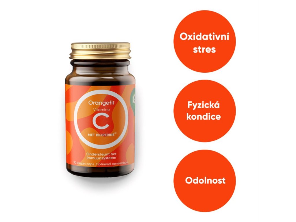 Vitamín C je pro naše tělo esenciální, to znamená, že naše tělo si vitamín C neumí vytvořit a musí být přijímán spolu s potravou. Přírodní vitamín C se nejvíce vyskytuje v ovoci a zelenině, jako jsou pomeranče, brokolice a brambory. Vitamin C je silný antioxidant a pomáhá také při normálním fungování imunitního systému. V případě nedostatečného příjmu přirozených zdrojů vitamínu C v rámci stravy, dochází k deficitu vitamínu C v našem těle (za minimum je považována doporučená denní dávka 75 mg). Orangefit vitamín C obsahuje optimalizovanou (zlatá střední cesta) denní dávku 250mg, tato dávka ideálně pokrývá denní potřebu a nezatěžuje zbytečně ledviny.