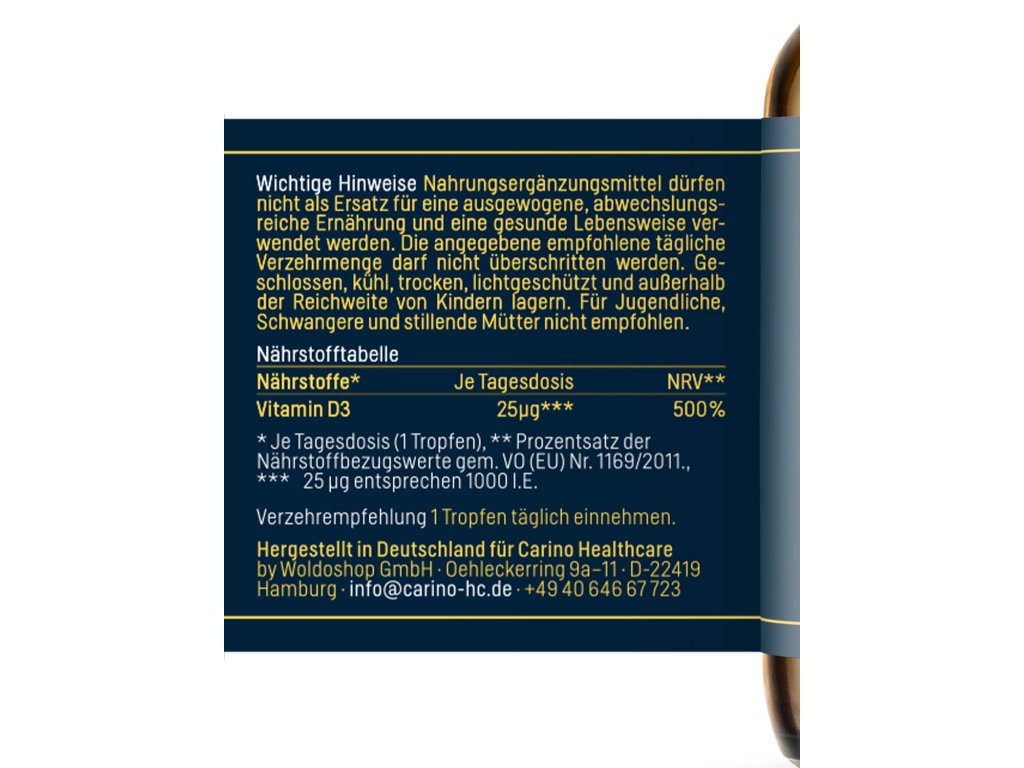 Carino vitamín D3 byl vyroben a farmaceuticky testován v Německu. Je vhodný pro vegetariány a obsahuje pouze účinné látky s ověřeným původem.