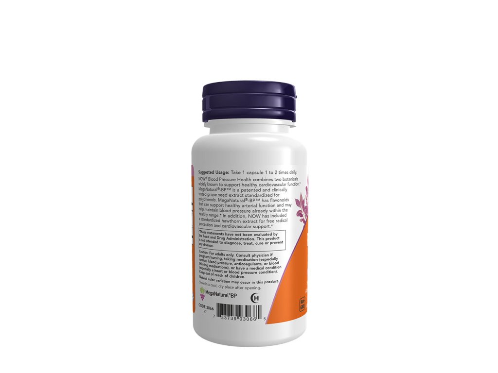 NOW® Blood Pressure Health kombinuje dvě rostlinné látky, o nichž je všeobecně známo, že podporují zdravou funkci kardiovaskulárního systému. MegaNatural®-BP™ je patentovaný a klinicky testovaný extrakt z hroznových jader standardizovaný na polyfenoly. Přípravek MegaNatural®-BP™ obsahuje flavonoidy, které mohou podporovat zdravou funkci tepen a mohou pomáhat udržovat krevní tlak již ve zdravém rozmezí. Společnost NOW navíc přidala standardizovaný extrakt z hlohu pro ochranu před volnými radikály a podporu kardiovaskulárního systému