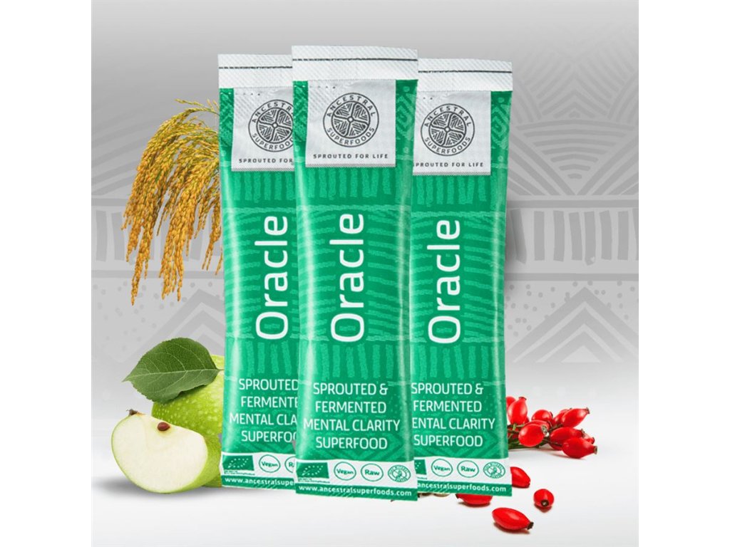 Oracle je vícesložková funkční potravina, speciálně navržená pro podporu mozkových funkcí, vnitřního klidu a rovnováhy. Zvyšuje koncentraci, osvěžuje mysl, zlepšuje spánek, peristaltiku a střevní rovnováhu (vyvažuje mikrobiom), posiluje imunitu a alkalizuje (metabolický detox).