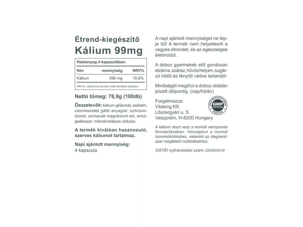 Vitaking Potassium 396 mg 100 kapslí