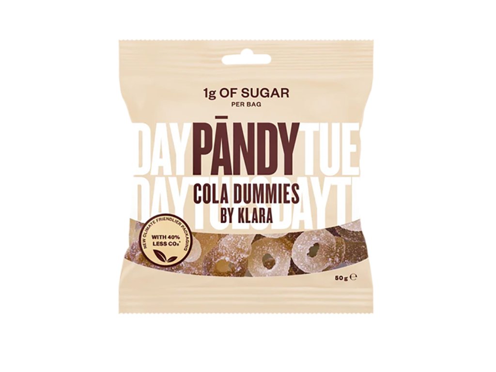 Cola (Cola dummies): Polydextróza (vláknina), isomalt-oligosacharidy*, sladidlo (erythritol, acesulfam-K, sukralóza), voda, želatina (hovězí), regulátor kyselosti (E296), aromata, barvivo (E150d), lazurovací prostředek (erythritol, E296, E903).