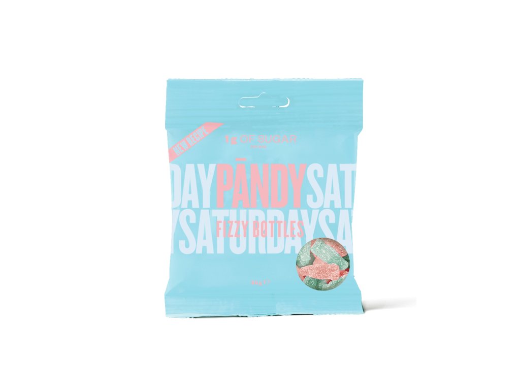 Kyselé ovoce (Fizzy Bottles): Polydextróza (vláknina), isomalto- oligosacharidy*, sladidlo (erythritol, acesulfam-K, sukralóza), želatina (hovězí), regulátor kyselosti (E296), aromata barviva (E170, E133, E120), leštící látka (erythritol, E296, E903). Může obsahovat stopy mléka.