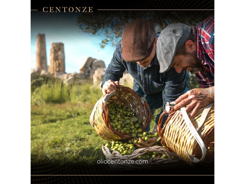 Prořezávání se provádí ručně tradičním způsobem, který se dědí z generace na generaci. To nám umožňuje získat velké dužnaté olivy, které poskytují vysoce kvalitní olej. Nejlepší olivy se sklízejí ručně v měsících říjnu a listopadu, za studenta se lisují během 8 hodin na olej. Zvláštní povaha terénu a klimatu, staleté stromy, naše vášeň a láska k jejich růstu jsou důvody, proč jsou Centonze olivové oleje skutečným pokladem. Ihned po ruční sklizni jsou olivy transportovány na zpracování v perforovaných boxech pro zajištění maximální kvality. Nejdříve jsou očištěny od prachu, větviček a listí, následně jsou šetrně opláchnuty studenou vodou a přeneseny na vibrační mřížky pro odstranění zbývajících nečistot.