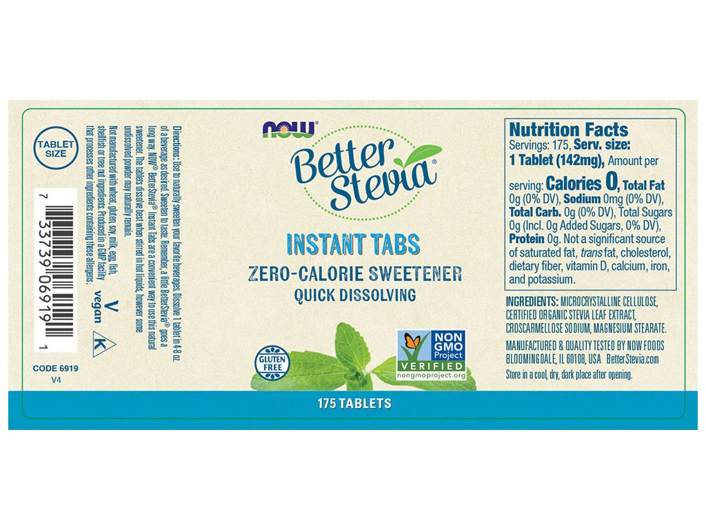 NOW® BetterStevia® je přírodní sladidlo s nulovým obsahem kalorií a nízkým glykemickým indexem, které představuje dokonale zdravou náhradu stolního cukru a umělých sladidel. Na rozdíl od chemických sladidel obsahuje NOW® BetterStevia® čistý extrakt ze stévie. Společnost NOW přijala zvláštní opatření, aby zachovala přirozené vlastnosti stévie v této jedinečné, čisté stévii s lepší chutí. Instantní tablety NOW® BetterStevia™ představují pohodlný způsob použití tohoto přírodního sladidla. Tablety se nejlépe rozpouštějí v horkých tekutinách, avšak část celulózového prášku může přirozeně zůstat jako sediment