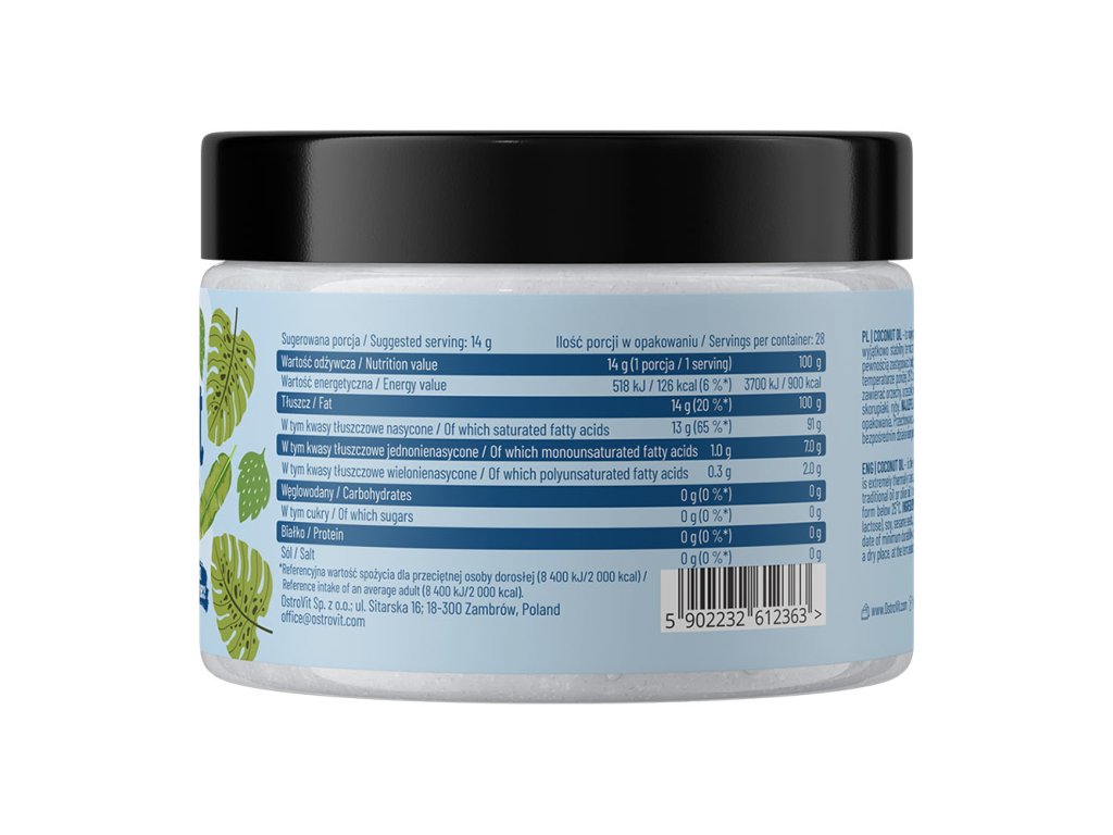OstroVit Coconut Oil je 100% přírodní a rafinovaný kokosový olej, který neobsahuje přidanou sůl, cukr a další zbytečná plnidla, díky čemuž je cenným doplňkem každodenní stravy.